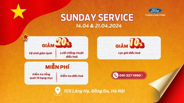 👉 Ngày Chủ nhật 21/01/2024, Đại lý Thăng Long Ford mở cửa làm dịch vụ...