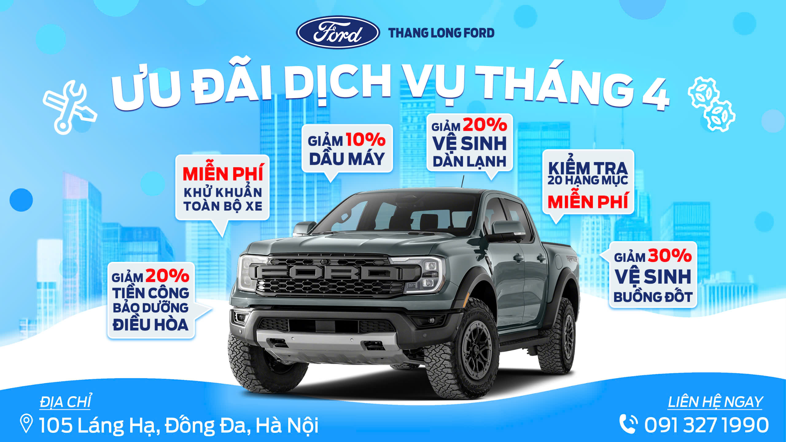 Chào tháng mới Thăng Long Ford dành tặng khách hàng những ưu đãi đặc biệt khi sử dụng dịch vụ bảo dưỡng và sửa chữa ô tô như: